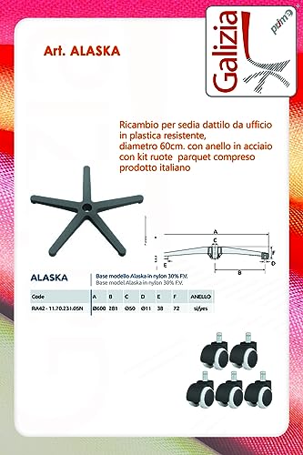 Idealsedie base in plastica nera per poltrona da ufficio D.600 con ruote in plastica