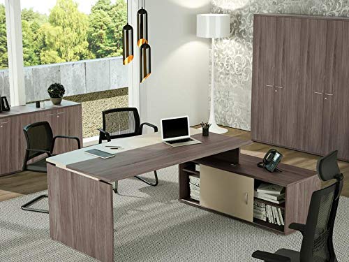 Ideapiu Scrivania semidirezionale di Design 180x87x74h Presto News Realizzata in Laminato Frassino Toscano. Modello Presto Plus