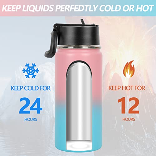 IDEATECH Borraccia Bambini con Cannuccia, Borraccia Termica da 450 ML, Bottiglia Termica Inox, Borraccia Termica Bici Bottiglie Termiche Bottiglia per Bevande a Doppia Parete e Senza BPA 2 Coperchi