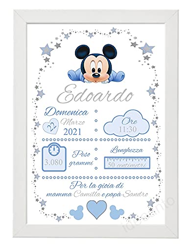 Ideeanto, Quadretto nascita cornice nascita personalizzata con I dati del tuo bambino/a cornice neonato ottima idea regalo