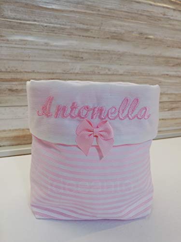 Ideeanto Sacchetto Porta Confetti Caramelle Nascita, Porta Oggetti Neonato cameretta Personalizzato con Nome del Bambino/a (Rigato Rosa)