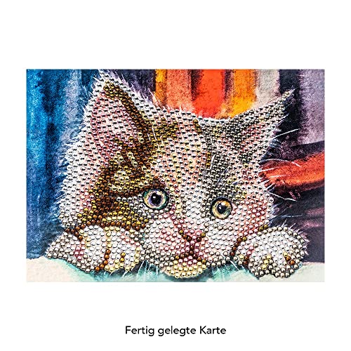 Ideen mit Herz Diamond painting - Biglietto di auguri con strass, formato DIN B6, 370 g/m², con pietre, busta e utensili, motivo: gatto