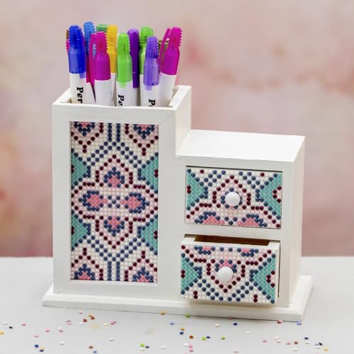 Ideen mit Herz Organizer da scrivania in legno, con contenitore per penne, 2 cassetti e cornice per foto