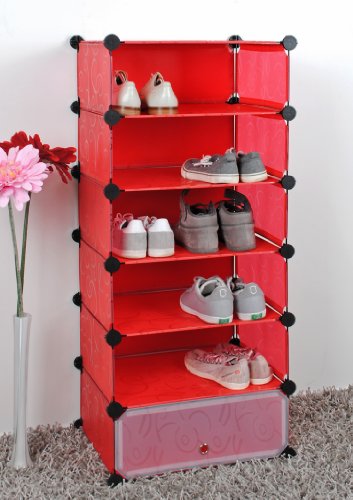 Scarpiera ad innesto in colore rosso con 6 sportelli removibili in bianco trasparente;
