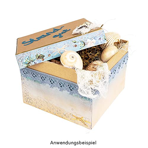 La superficie in carta kraft invita a realizzare progetti creativi. Dipingete o decorate queste scatole con i vostri materiali preferiti. Possono essere abbellite ad esempio con carta di riso, adesivi, nastro adesivo decorativo o bordature con gemme e pietre preziose.