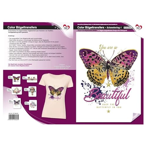 Ideen mit herz Trasferibile a caldo | Trasferibile per stirare | Termoadesivo applicabile con ferro da stiro | Per decorare tessuti come magliette, borse, federe | Din A4 (Farfalla 1)