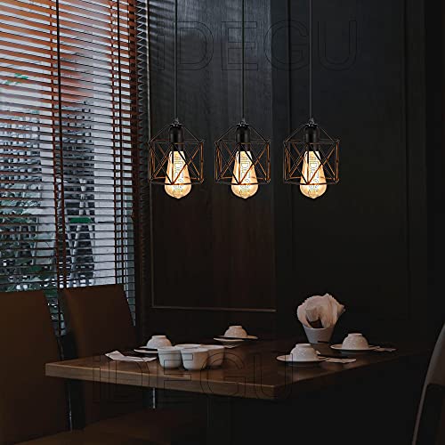 IDEGU Apparecchio industriale, 3 lampade a sospensione in ferro gabbia quadrata, 15 cm, lampadario da soffitto, E27, illuminazione per soggiorno, camera da letto, bar (nero)