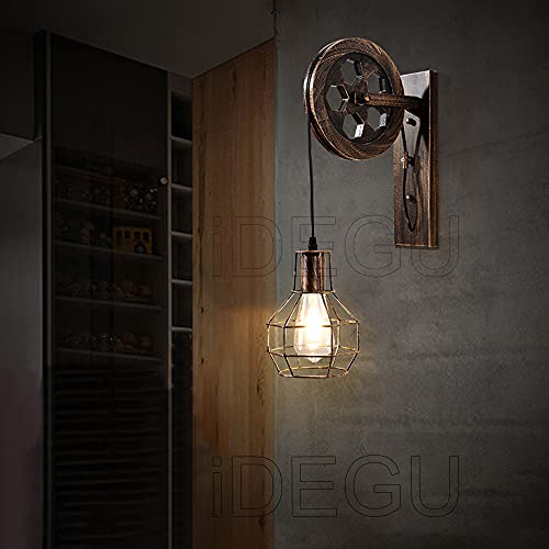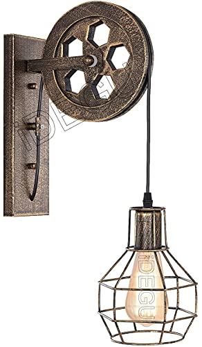 【Lampada da Parete Vintage】 Lampada dal design creativo di puleggia, con rivestimento di colore ruggine retrò. Il paralume sospeso a forma di gabbia contribuirà a creare un'atmosfera piacevole.