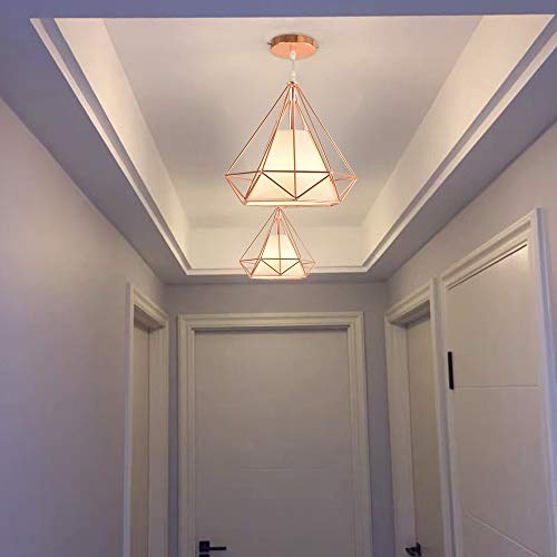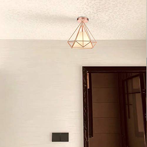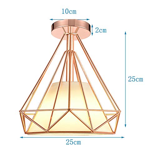IDEGU Lampada da Soffitto Industriale Disegn Geometrico Gabbia in Metallo Diamond-formata E27 Vintage Plafoniera per Camera Soggiorno Corridoio, Ø 25 cm, Oro Rose