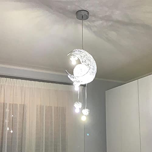 IDEGU Lampada a Sospensione LED Plafoniera Creativa Design Luna e Stelle Lampada da Soffitto Moderno con 5 Lampadine Lampadario per Camera dei Bambini (Luce Bianca Fredda)