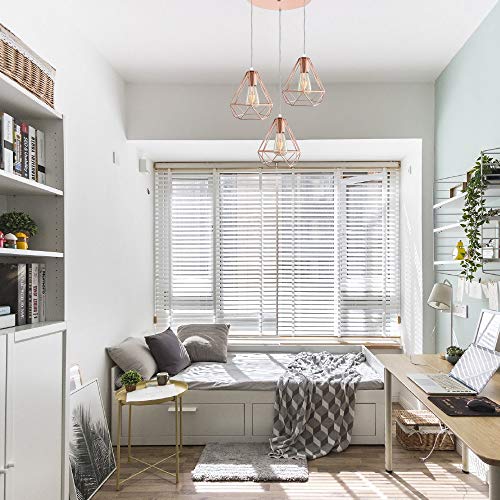 IDEGU 3 Luci Lampada a Sospensione Vintage, E27 Lampadario Industriale Metallo Paralume Stile Gabbia Geometrica Plafoniera Lampada da Soffitto per soggiorno Camera sala da pranzo, Ø 20cm, Oro rosa