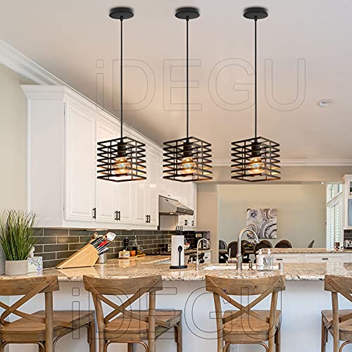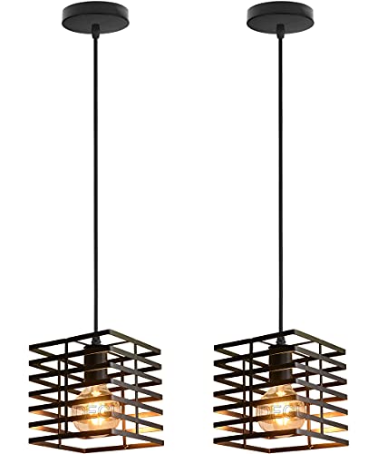IDEGU - Lampadario da soffitto, industriale, vintage, a sospensione, design a cubo, creativo, per soffitto, paralume nero in ferro, per soggiorno, camera, cucina, bar, confezione da 2