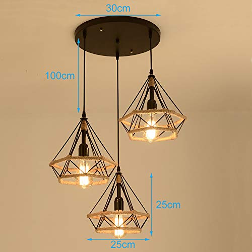 IDEGU lampadario a sospensione industriale, lampada E27 in stile vintage gabbia Lampada a sospensione in metallo e corda di canapa, lampada E27 per sala da pranzo, soggiorno, cucina, 25 cm, nero