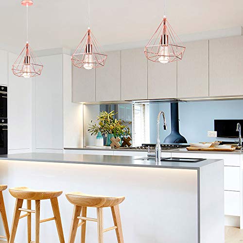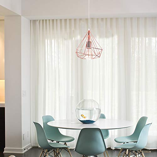 IDEGU Lampadario a sospensione vintage a forma di diamante, in metallo, lampada a sospensione per camera da letto, soggiorno, ristorante, diametro 25 cm (oro rosa)