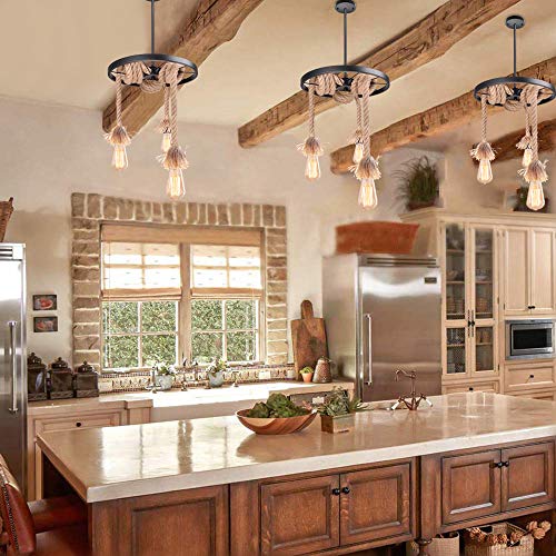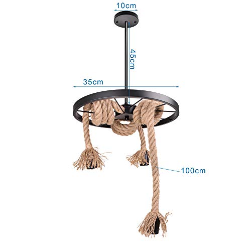 Sospensione vintage: Design con metallo a forma di ruota, in vernice nera, con cordino in canapa. La semplice ed elegante illuminazione del lampadario in metallo funge anche da decorazione per la tua casa.