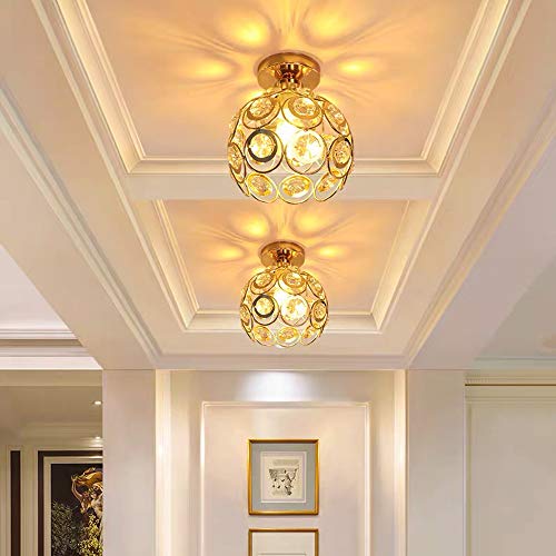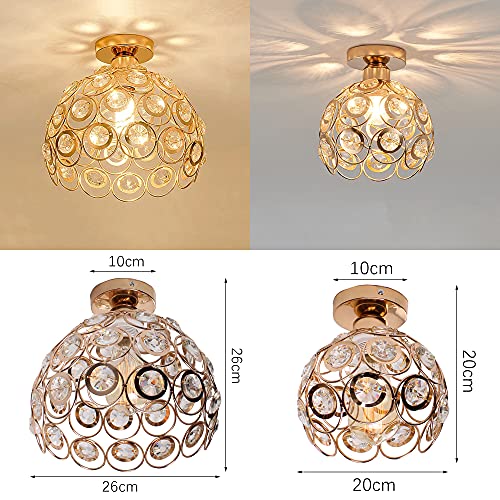 IDEGU 2 Pezzi Lampade da Soffitto Moderno, Plafoniera in Metallo con Cristallo Creativa E27 Lampadario Per Corridoio Camera da Letto Soggiorno (20cm, Oro)