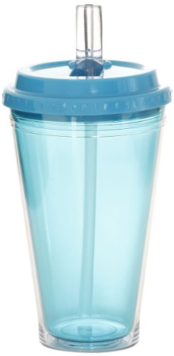 Idelice CO258741A Bicchiere a Doppia Parete per Soda o Succo di Frutta o Cocktail con Cannuccia Integrata Blu Turchese 750 ml