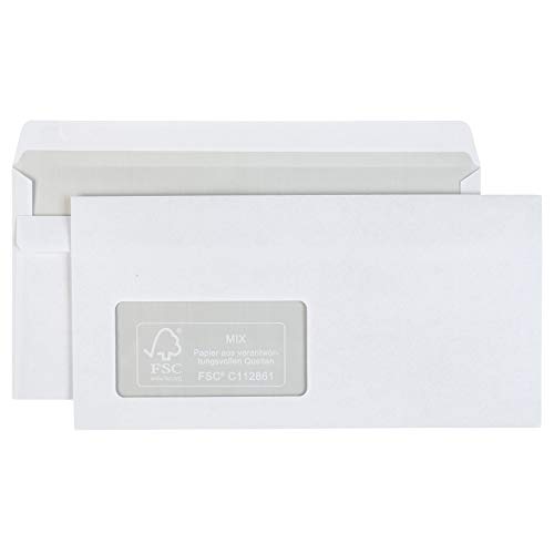 Idena 10223 - Buste formato DIN lungo FSC Mix, 75 g/m², autoadesivo, con finestra, confezione da 100, colore: Bianco