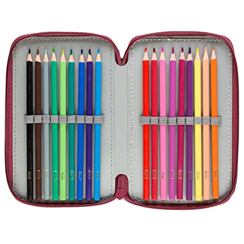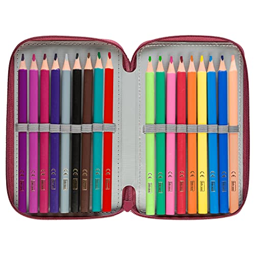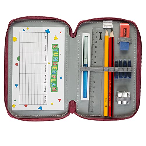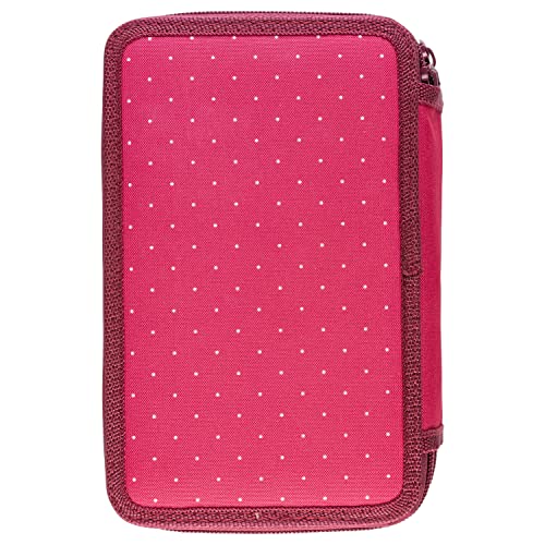 Idena 20119 Alunni Triplo con 3 Scomparti con Cerniera e 47 Pezzi, Design da Ragazza, Astuccio con Penne Colorate, Righello, Matite e Altri Accessori per La Scuola, Colore Rosa