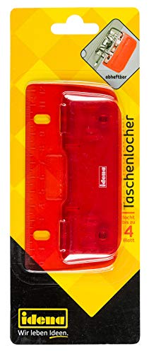 Idena 22101 - Perforatore tascabile, fino a 4 fogli, rosso trasparente, 1 pezzo