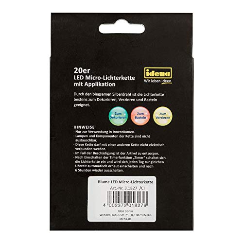 Idena 31827 - Catena luminosa a LED con 20 LED a forma di fiore, con funzione timer di 6 ore, funzionamento a batteria, circa 1,25 m di lunghezza, per fai da te e decorazioni, feste, primavera ed