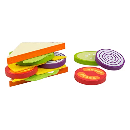 Idena 4100105 - Gioco di Imitazione, Set di stoviglie e Accessori per Cucinare Sandwich, in Legno e Feltro, 12 pz., ca. 15 x 10 x 4 cm