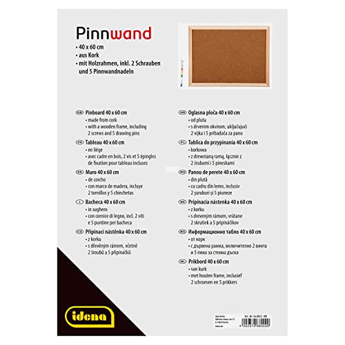Idena 568022 - Bacheca da parete in sughero, puntine incluse, circa 40 x 60 cm