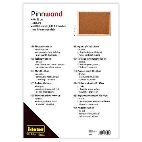 Idena - Bacheca in sughero, cornice in legno, puntine incluse nella confezione, circa 60 x 90 cm