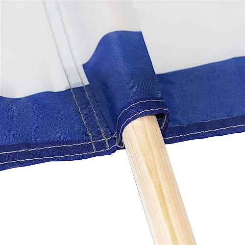 Pratica protezione da vento e sguardi indiscreti in tessuto spesso con stampa su un lato in stile nordico a righe blu e bianche per spiaggia, giardino e campeggio