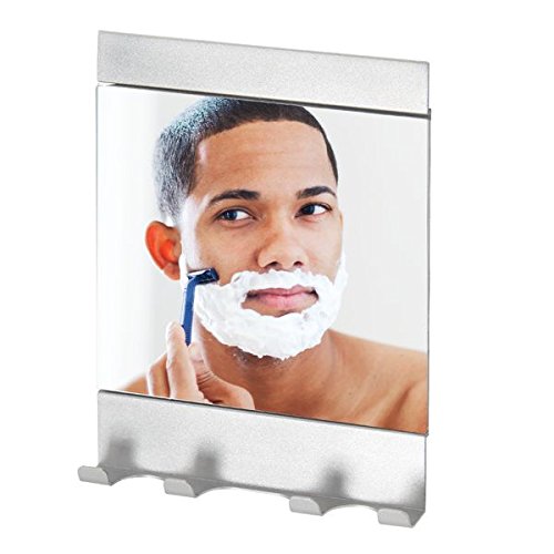 IDesign Affixx Metro Specchio Doccia con Ganci per Rasoi, Antiruggine, Autoadesivo, Metallo, Argento, 15.7x3x21.4 cm