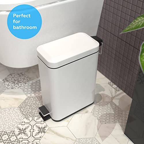 IDesign Cestino spazzatura, Piccolo secchio spazzatura in plastica e metallo, Cestino rifiuti con coperchio ideale per cucina e bagno, bianco