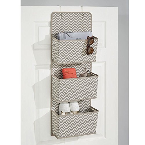 IDesign Axis Chevron Organizzatore da Porta Armadio, 3 Tasche, Vinile, Beige, 33x11.43x91.44 cm