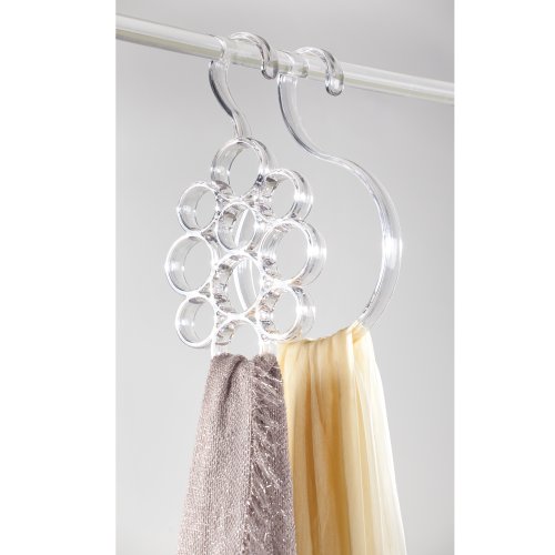 IDesign Clarity Appendino per sciarpe, Organizer da appendere in plastica per sciarpe, foulard, cravatte e cinture con 10 occhielli, Trasparente