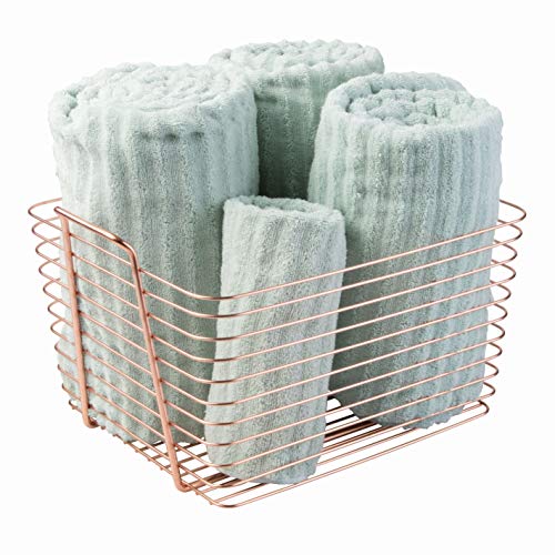IDesign Classico Cesto portaoggetti, Grande cesto con manici in metallo ideale per il bagno o per la cameretta, rame