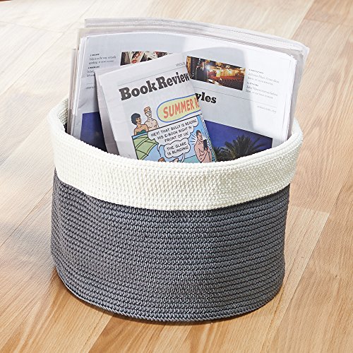 IDesign Ellis Portaoggetti, Grande Cestino uncinetto in polipropilene, per occhiali da sole, giochi e accessori, grigio/avorio