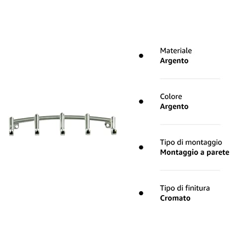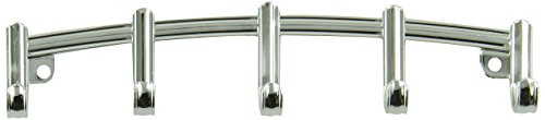 IDesign Ganci portachiavi a parete, Portachiavi da parete compatto in metallo con 5 ganci, Appendichiavi da parete ideale per i guinzagli, argento