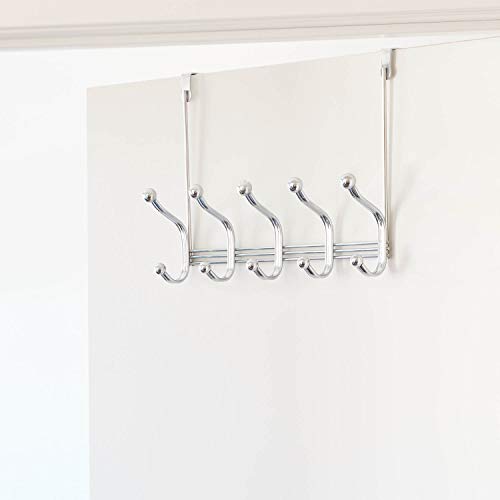 IDesign York Lyra Guardaroba per Porta con 5 Ganci Doppi, Ganci Appendiabiti da Porta in Metallo per Giacche, Cappelli, Sciarpe o Foulard, Argento