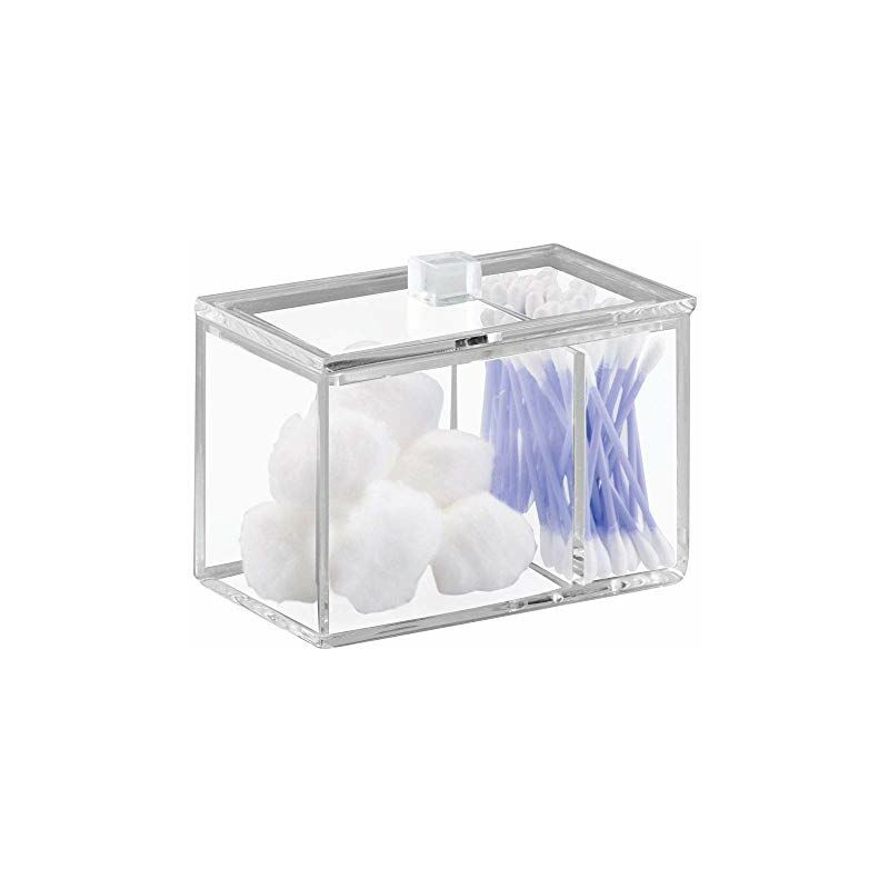 IDesign Organizer bagno con coperchio, Elegante porta dischetti struccanti in plastica con 2 scomparti, Pratico porta cotton fioc e organizer cosmetici, trasparente 12,7 cm x 7,6 cm x 10,7 cmStyle: Organizer Bagno con Coperchio