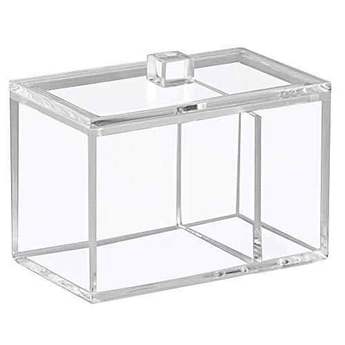 IDesign Organizer bagno con coperchio, Elegante porta dischetti struccanti in plastica con 2 scomparti, Pratico porta cotton fioc e organizer cosmetici, trasparente