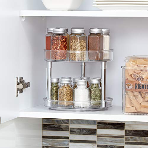 IDesign Organizer cucina a 2 livelli, Portaspezie girevole in plastica priva di BPA, Porta spezie ideale anche per conserve e altri utensili, trasparente