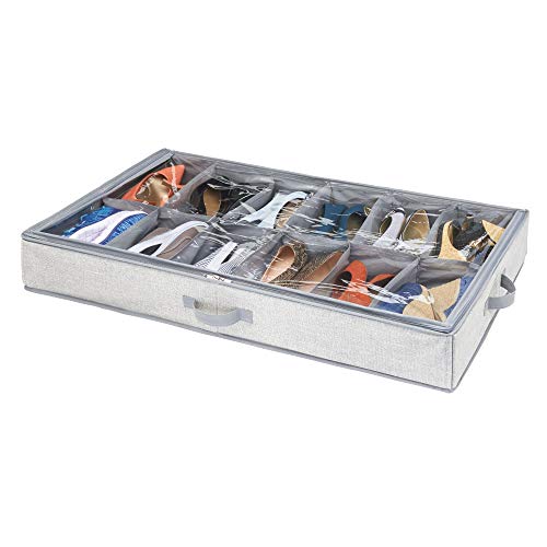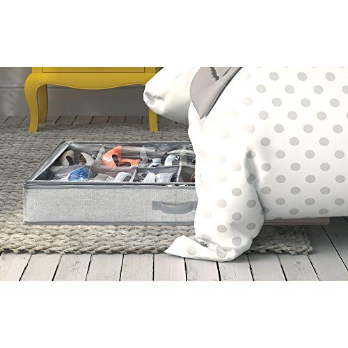 IDesign Aldo Organizer scarpe per 12 paia di calzature, Organizzatore scarpe in tessuto di polipropilene, Scatola scarpe per la camera da letto o l'armadio, grigio