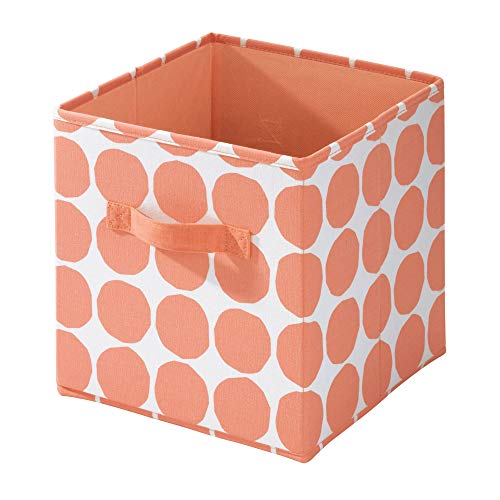 IDesign Cubo Piccolo, Contenitore Mix Cotone e Poliestere con 2 Manici Laterali, Portaoggetti Tessuto a Pois per armadi, camerette e Altro, Arancione, 26,7 cm x 28,0 cm