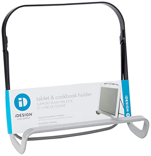 IDesign Supporto tablet e libri di ricette, Leggio da tavolo in metallo per piano da lavoro cucina, Porta tablet ideale per cucinare e leggere le ricette, nero opaco