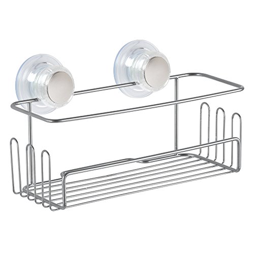 IDesign Turn-N-Lock Mensola doccia, Portaoggetti per doccia in metallo con ventose, argento