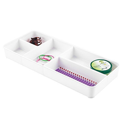 IDesign Rain Vassoio Cosmetici, 5 Scomparti, Grande, Plastica, Bianco, 40.75x17.75x5 cm