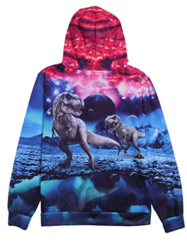 Idgreatim Felpa unisex con cappuccio, pullover 3D stampato con coulisse e tasche dinosauro Medium