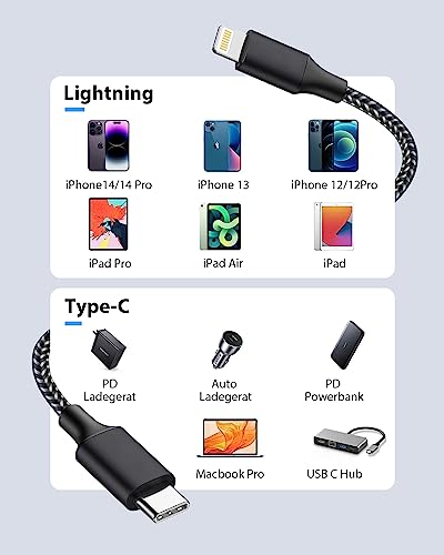 IDISON Cavo USB C Lightning, Cavo di Ricarica per iPhone Certificato MFi tipo C 1M+2M 2 Pack Apple in Nylon Power Delivery Compatibile con iPhone 14/14 Pro/13/13 Mini/12/12 Pro MAX/XS/XR/SE