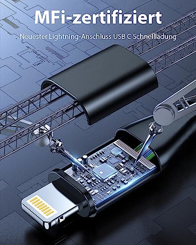 CERTIFICATO MFi - Il cavo da USB C a Lightning è certificato MFi e i test rigorosi garantiscono una ricarica sicura con piena compatibilità per i vostri dispositivi e l'assenza di messaggi di avviso.Con il nostro cavo di ricarica USB C per iPhone, potrete trasferire dati alla velocità della luce.