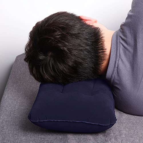Idocolors Cuscino Gonfiabile da Campeggio Blu Floccaggio Cuscino d'Aria Portatile Cuscino di Supporto per Cervicale Cuscinetti Comodi per Ufficio, Auto, Aerei, Viaggi