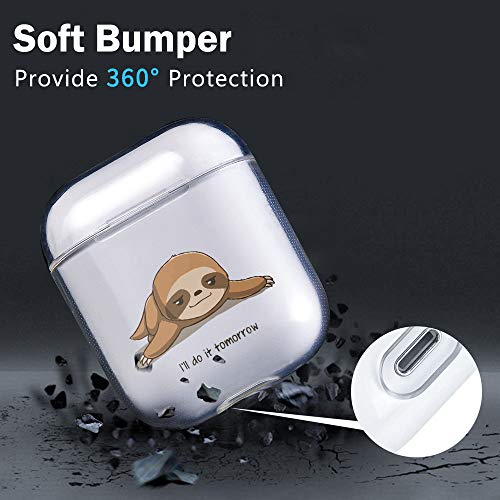 Idocolors Custodia per Apple AirPods 1/2 Antiurto Custodia Protettiva Trasparente con Motivo pigrizia di domani Case Cover in TPU Morbida (LED visibile) Supporta la Ricarica Wireless